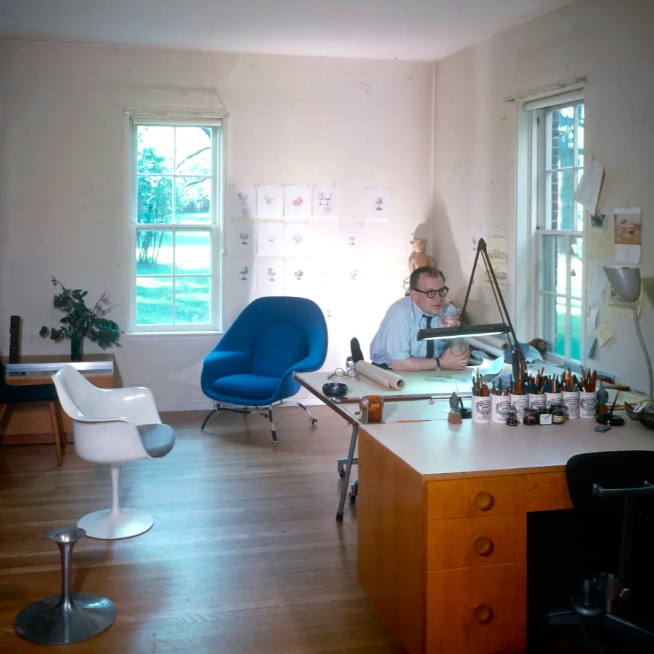 Eero Saarinen, né en 1910 à Kirkkonummi en Finlande, est un architecte et designer qui a profondément marqué le paysage architectural et du design du XXe siècle. Fils du célèbre architecte Eliel Saarinen, Eero émigre aux États-Unis avec sa famille en 1923. Il étudie d’abord la sculpture à l’Académie de la Grande Chaumière à Paris avant de se tourner vers l’architecture, obtenant son diplôme de l’Université Yale en 1934. Après ses études, il rejoint le cabinet de son père, où il commence à développer son style distinctif. En 1950, après la mort de son père, il fonde son propre cabinet, Eero Saarinen and Associates. Saarinen est reconnu pour ses formes sculpturales et ses solutions structurelles innovantes, mêlant fonctionnalité et esthétisme. Parmi ses réalisations architecturales les plus célèbres, on compte le Terminal TWA à l’aéroport JFK de New York et la Gateway Arch à St. Louis. Il est décédé prématurément en 1961, mais son œuvre continue d’influencer le monde de l’architecture et du design.