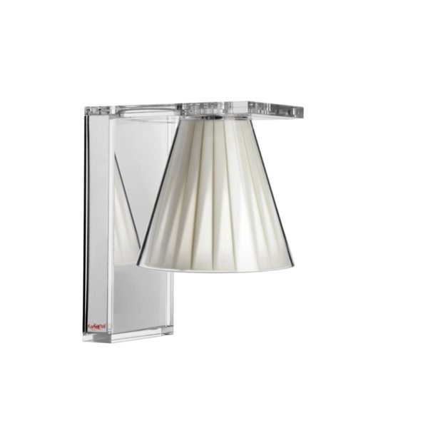 L'applique Light-Air de Kartell, conçue par Eugeni Quitllet, est une applique murale moderne, légère, avec un abat-jour conique suspendu dans un cadre rectangulaire transparent. Disponible en plusieurs couleurs, avec un abat-jour ciselé ou à tissu plissé, la collection se déclien égament en suspensions et lampes à poser. Pour les versions disponibles et présentées en boutique : nous consulter.