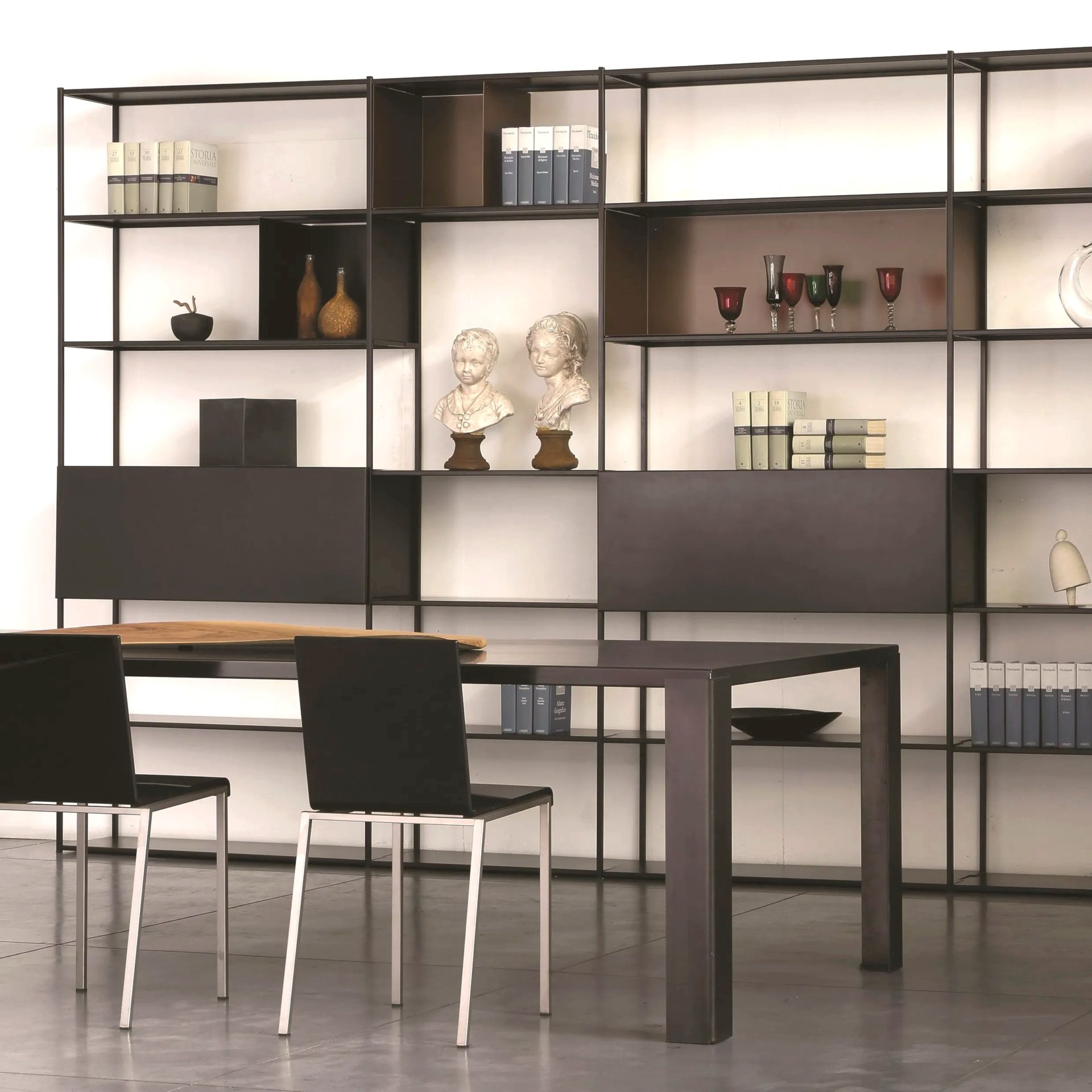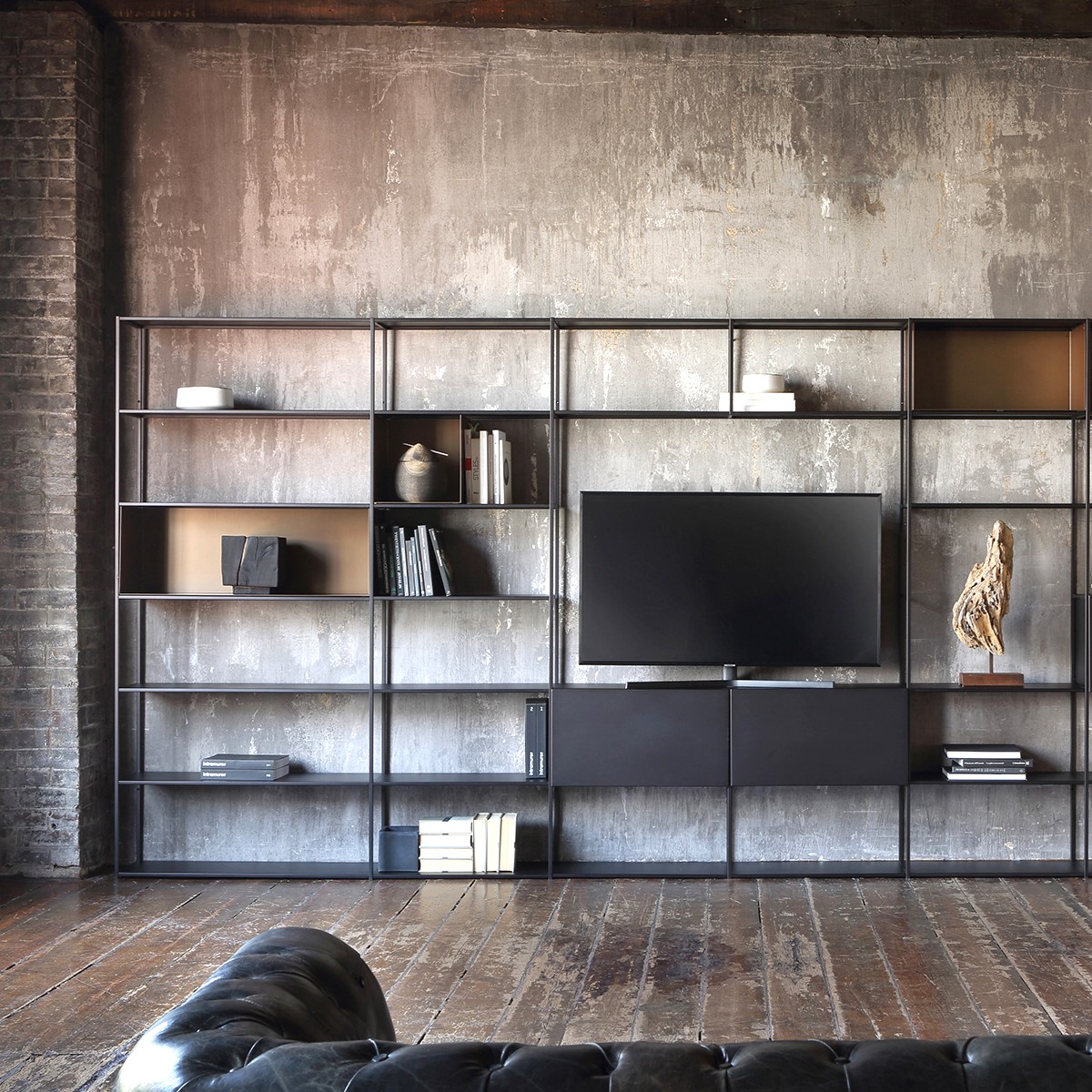 Nous contacterLe programme de bibliothèques Easy Irony, de la marque italienne Zeus, offre des solutions modulaires et élégantes, se déclinant en versions mobilier multimédia ou encore en séparations de pièce. Les composants existent en finitions blanc gaufré ou noir cuivré sablé, avec des étagères en métal verni et des caissons pour un rangement optimisé. La collection se caractèrise par la finesse des sections, les finitions très qualitatives, une grande robustesse et des possibilités de personnalisation uniques (voir quelques exemples dans la galerie d'images). Pour une composition personnalisée : nous consulter.