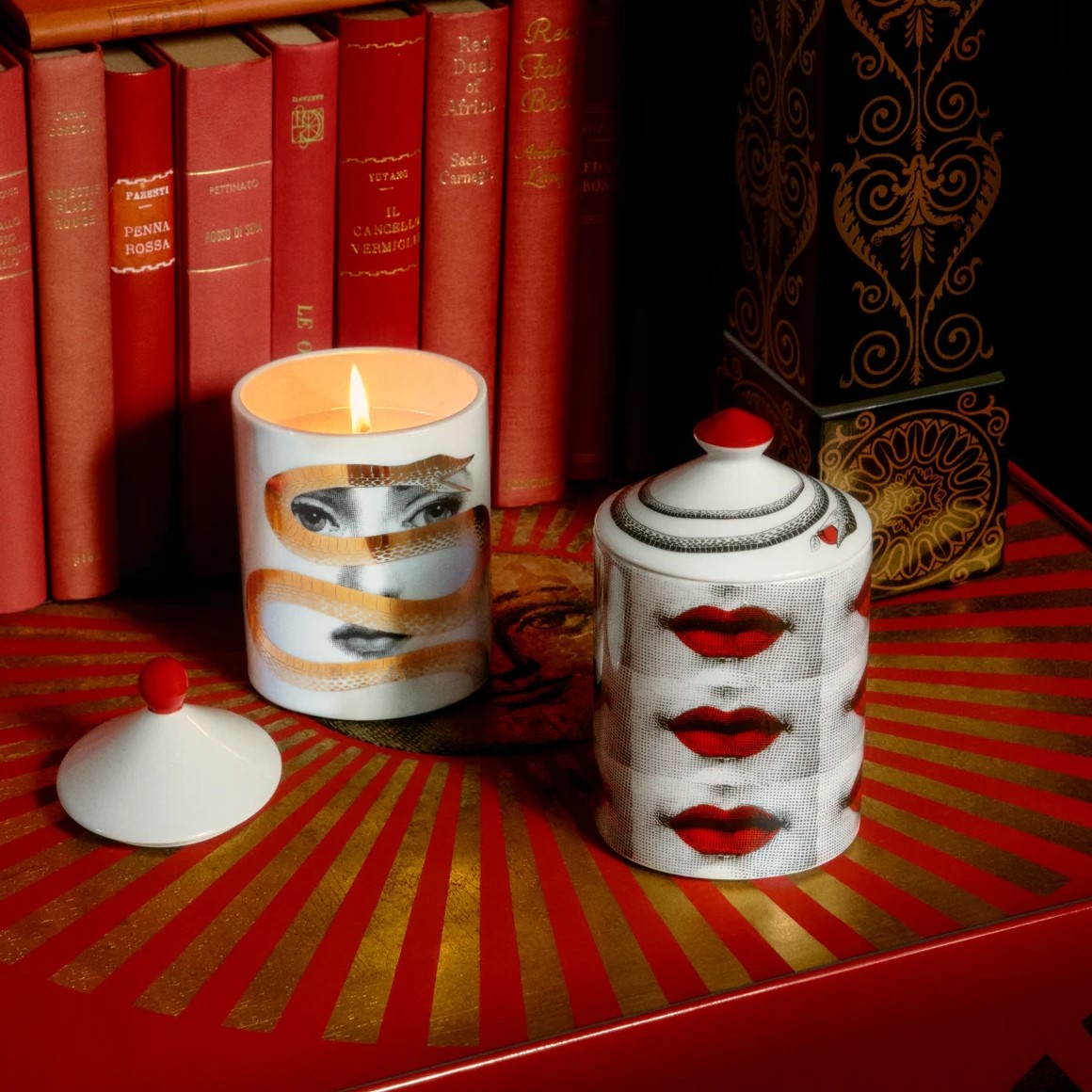 Le visage parfait de Lina Cavalieri s’épanouit au milieu des fleurs éclatantes de l’ornement Tra i Fiori, évoquant l’univers créatif d’une nature luxuriante. Une vision qui se reflète dans le riche bouquet de la fragrance Giardino Segreto, avec ses notes vertes et fraîches. Les bougies parfumées Fornasetti se déclinent en tailles, motifs et parfums : nous consulter pour les autres modèles disponibles en boutique.