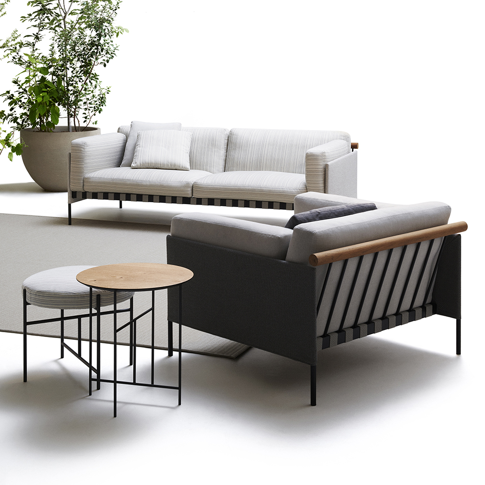 Nous contacterEtiquette est un projet d’inspiration scandinave qui dialogue avec un artisanat italien de qualité supérieure. Mis au point par le duo de designers GamFratesi, le modèle comprend un canapé, un pouf et des fauteuils, déclinables en versions pour l'intérieur ou pour l'extérieur. La version extérieure présente un corps en acier inoxydable peint en noir mat, complété par des sangles élastiques en tissu imperméable et une barre en bois de teck naturel. La collection se personnalise grâce aux collections de revêtements De Padova.