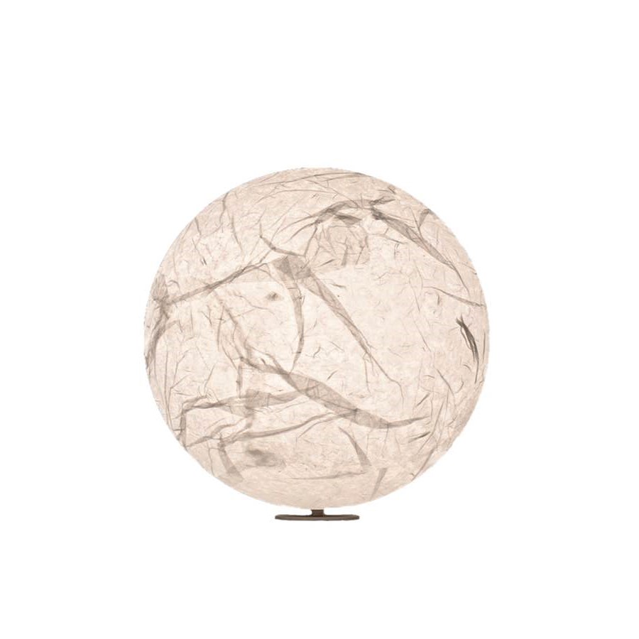 La lampe de table Moon T de Davide Groppi est une pièce au caractère unique, qui associe la technique du papier japonais à l'idée d'apporter la Lune chez soi. La version de table mesure 40 cm de diamètre, mais la collection se décline en de nombreuses tailles, dont la spectaculaire suspension de 2 mètres de diamètre.