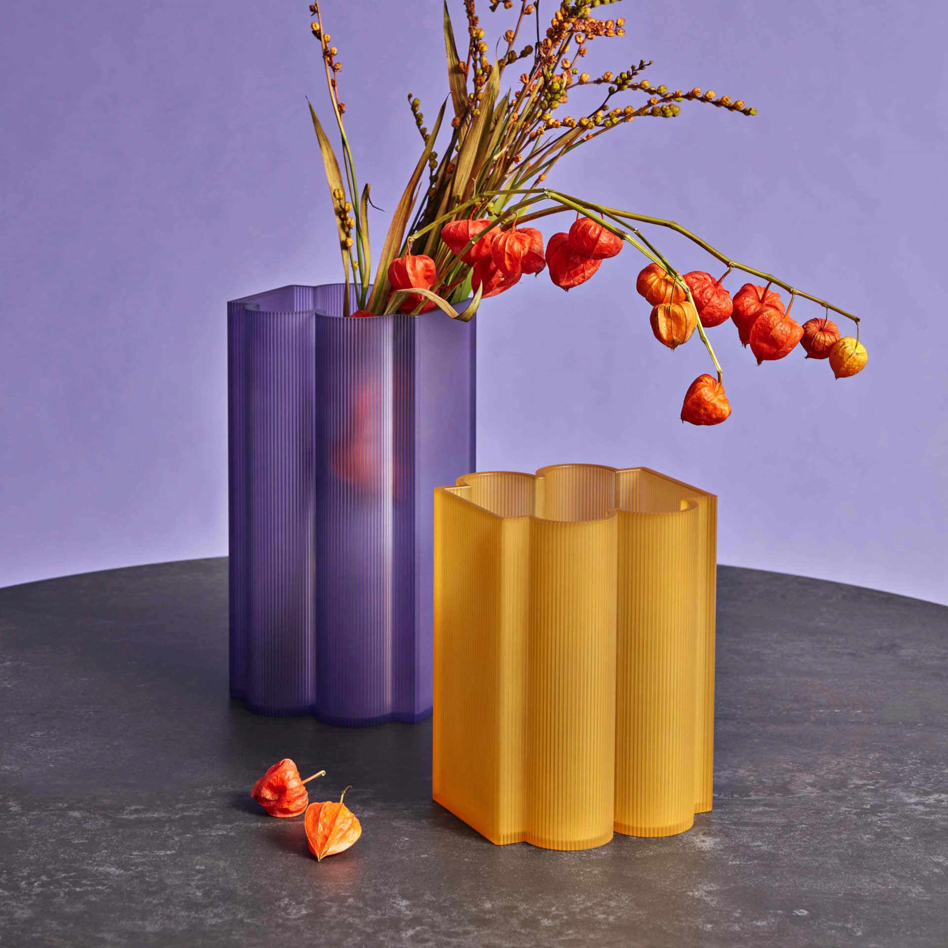 Le vase Okra Vase de Kartell, dessiné par Patricia Urquiola, se distingue par ses formes sinueuses et organiques. Disponible en 2 tailles (24 et 34 cm de hauteur) et 4 couleurs acidulées (orange, violet, jaune ou bleu ciel), il est constitué d'un nouveau matériau développé par Kartell, le PMMA recyclé, compatible avec un usage en extérieur. Pour les dimensions et coloris disponibles en boutique : nous consulter.